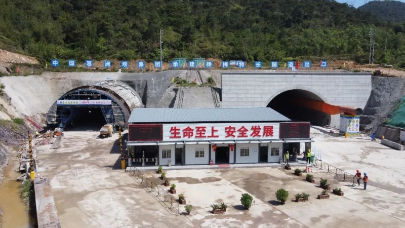 關山萬千重,山高人為峰。肇明高速穿越山嶺重丘區,這里山巒疊嶂,溝壑縱橫,全線共設隧道4條,其中特長隧道1條,長隧道3條,橋隧占比55.12%。施工難度最大、技術要求最高的當數楊梅特長隧道,作為本項目的又一個控制性工程,隧道全長4511米,位于西江與南廣鐵路之間,所處地段地質條件復雜,存在涌水、巖溶等不良地層,給施工帶來極大挑戰。