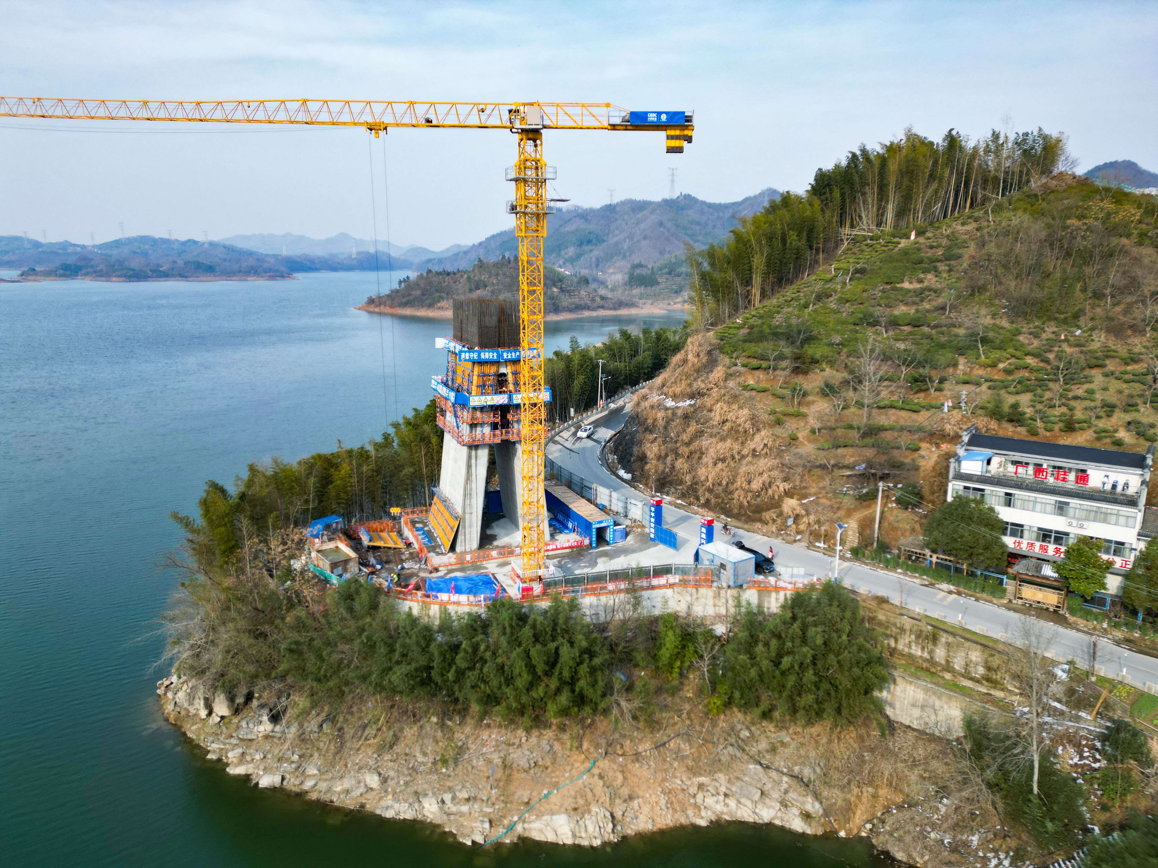 NEWS春山如黛,碧水含煙。在皖西大別山深處,響洪甸水庫西南角,中國能建葛洲壩集團(tuán)投資建設(shè)的和襄高速六安段鮮花湖特大橋正拔節(jié)生長,為項(xiàng)目年底如期通車提供堅(jiān)實(shí)保障。