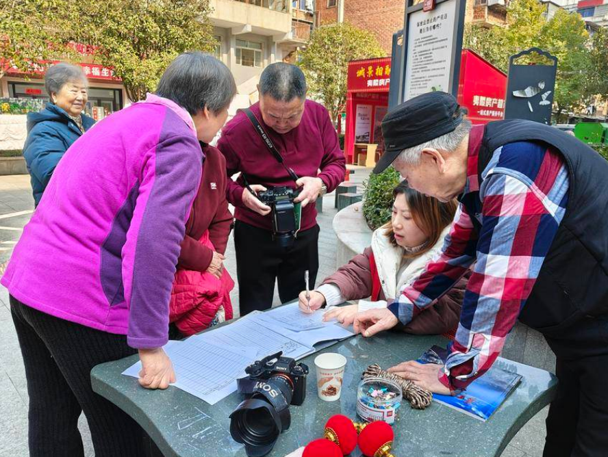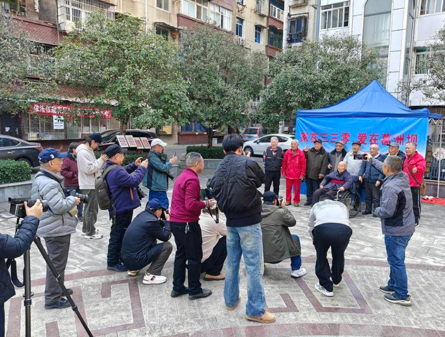 另一邊,攝影協會的攝影師們則架起相機、調試鏡頭,化身“幸福記錄者”。“家在三三零 愛在葛洲壩”的藍色背景板前,曾經為葛洲壩工程奉獻青春的老職工們,或是與家人并肩而立,或是與老同事合影留念,一張張笑臉被精準定格。攝影師們耐心引導站位、捕捉溫情瞬間,用光影為居民們留存下珍貴的新春記憶。