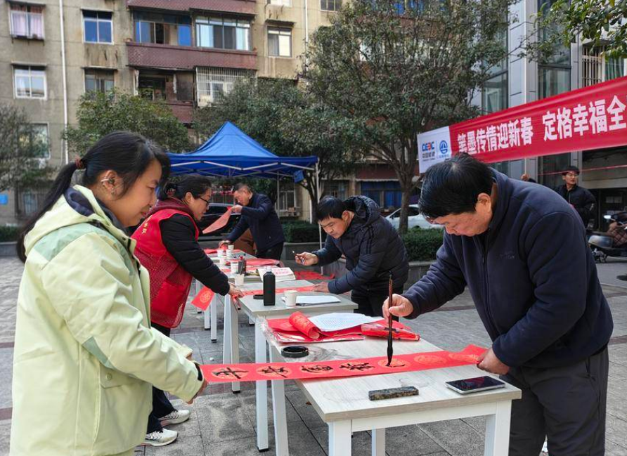 活動現場,最熱鬧的莫過于寫春聯的長桌。書法愛好者們齊聚一堂,揮毫潑墨,筆走龍蛇。“五福百福全家福,千春萬春滿堂春”,一副副寓意吉祥的春聯,一個個蒼勁有力的“福”字,在紅紙上接連誕生。居民們或在旁靜靜觀賞,或有序排隊等候,拿到心儀春聯的居民,臉上綻放出如暖陽般的笑容。