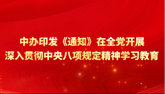 中辦印發《通知》在全黨開展深入貫徹中央八項規定精神學習教育