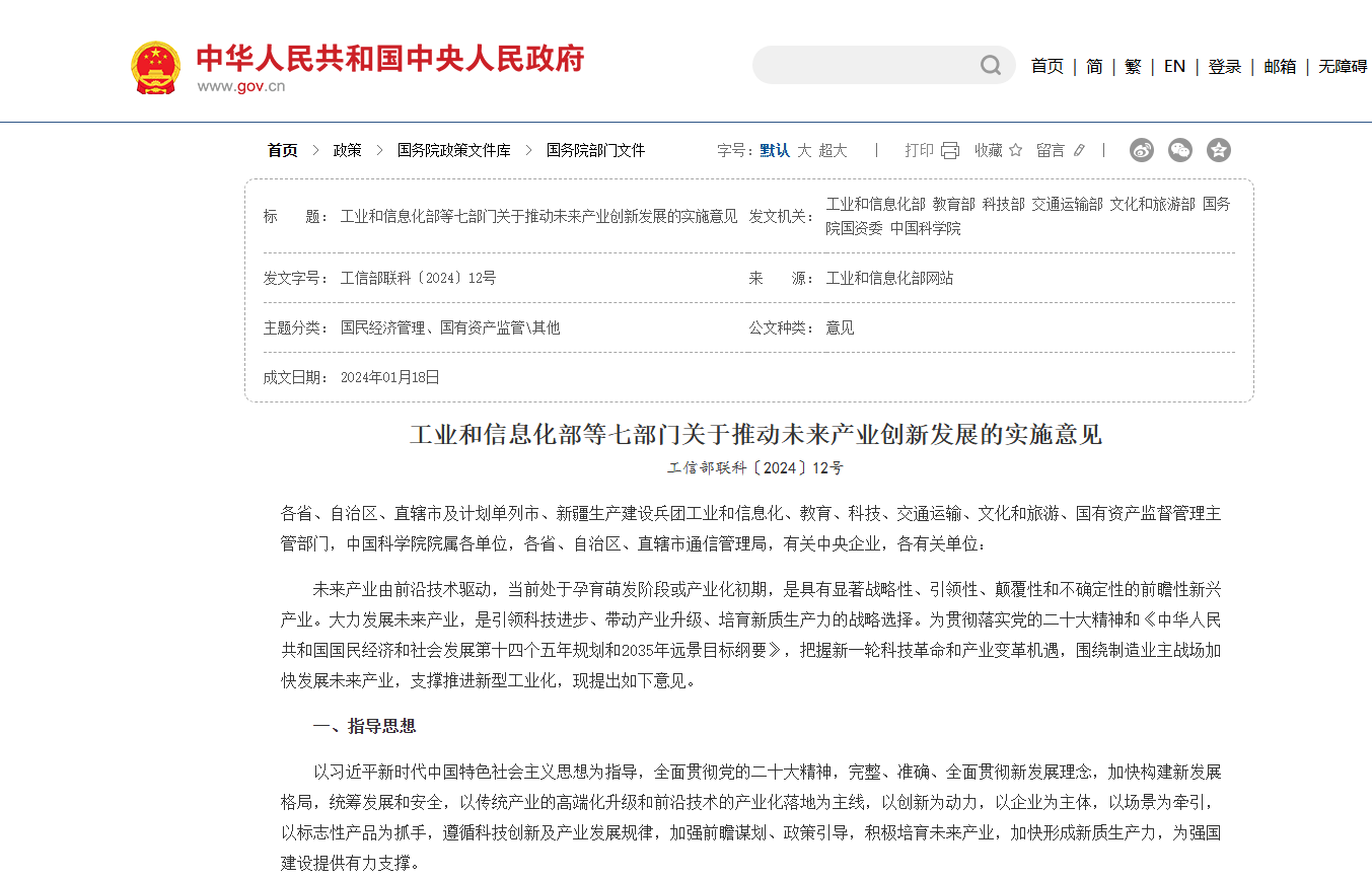 工業和信息化部等七部門關于推動未來產業創新發展的實施意見